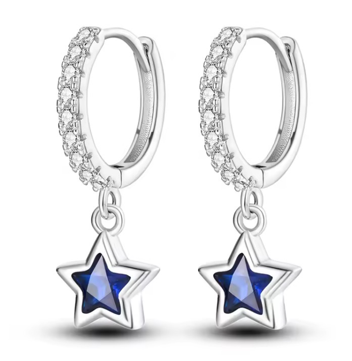 Ασημένια σκουλαρίκια καρδιές από γαλάζιο κεχριμπάρι , Ασήμι 925