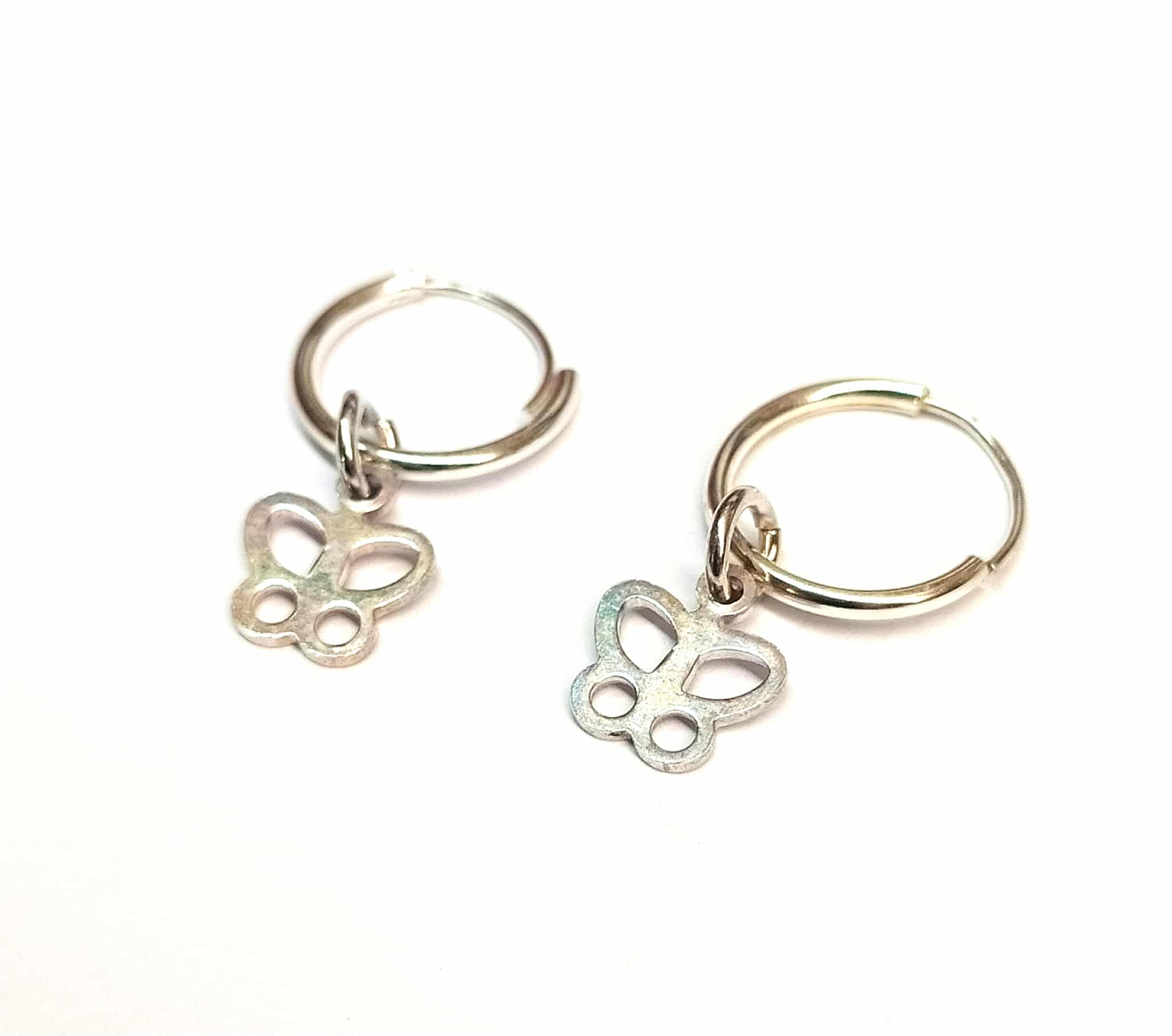 Ασημένιοι 925 κρίκοι με πεταλούδες, παιδικά ασημένια σκουλαρίκια