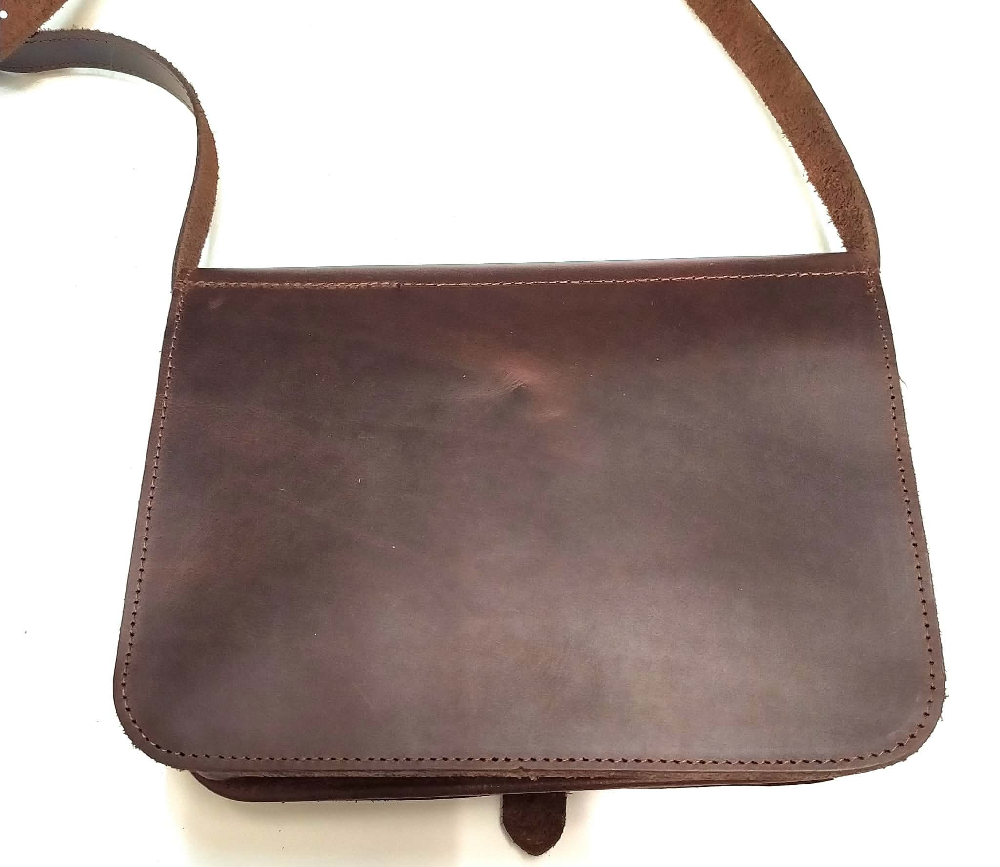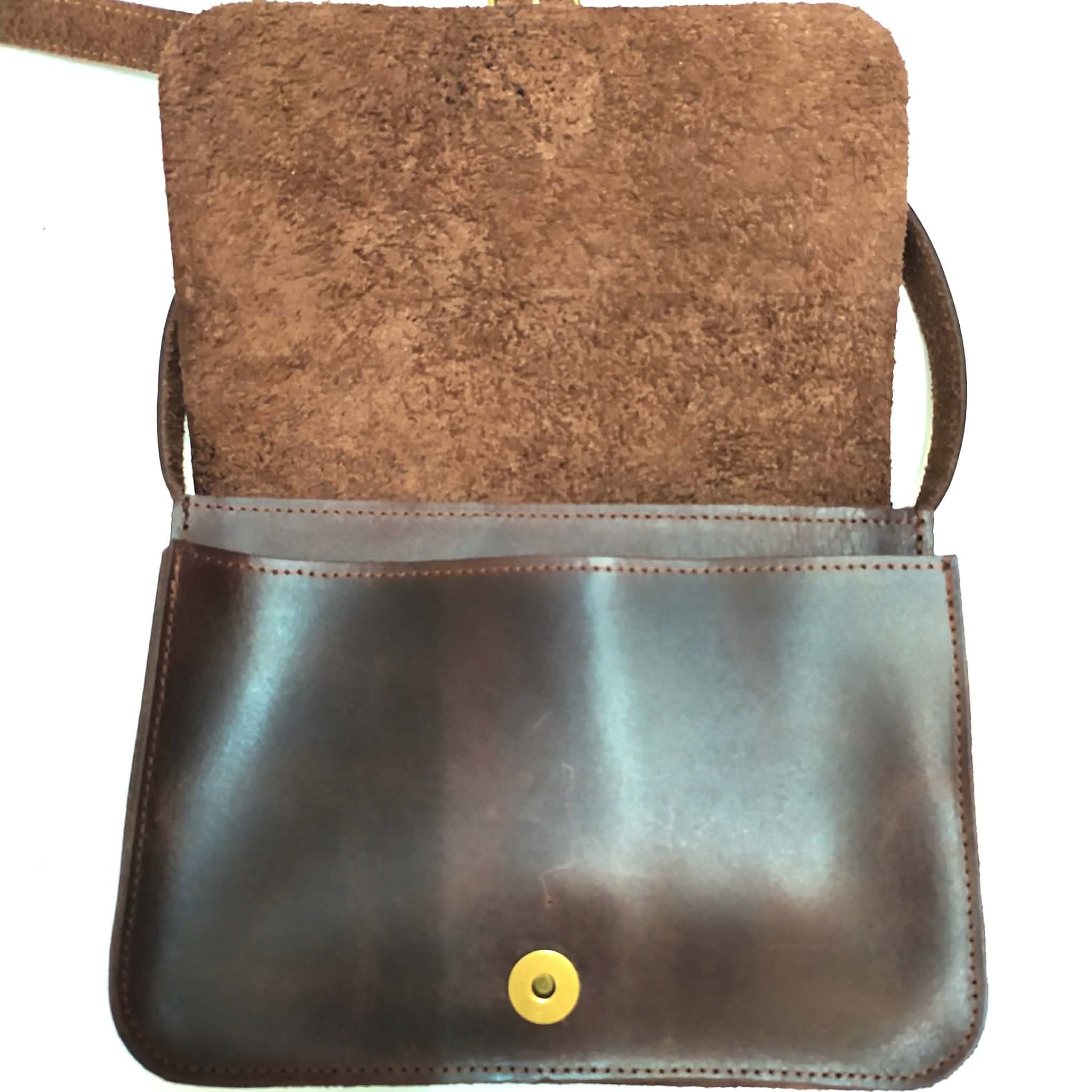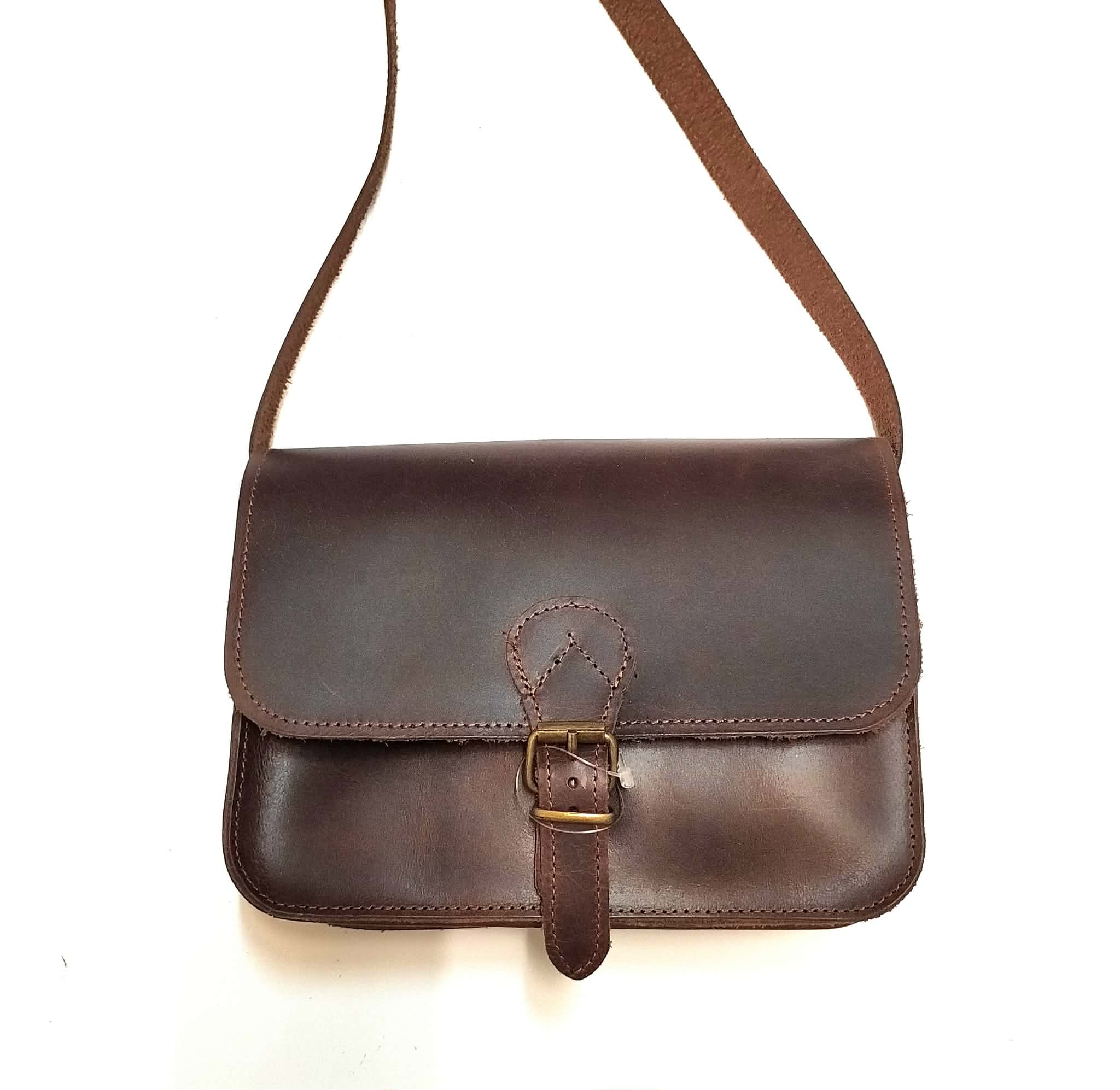 Kouros καφέ δερμάτινο τσαντάκι χιαστι Γνήσιο ελληνικό δέρμα