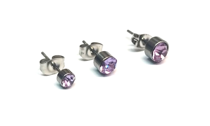 Σετ 3 σκουλαρίκια από ατσάλι με στρας υπό αλλεργικά 3-4 και 5 χιλιοστά