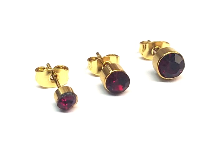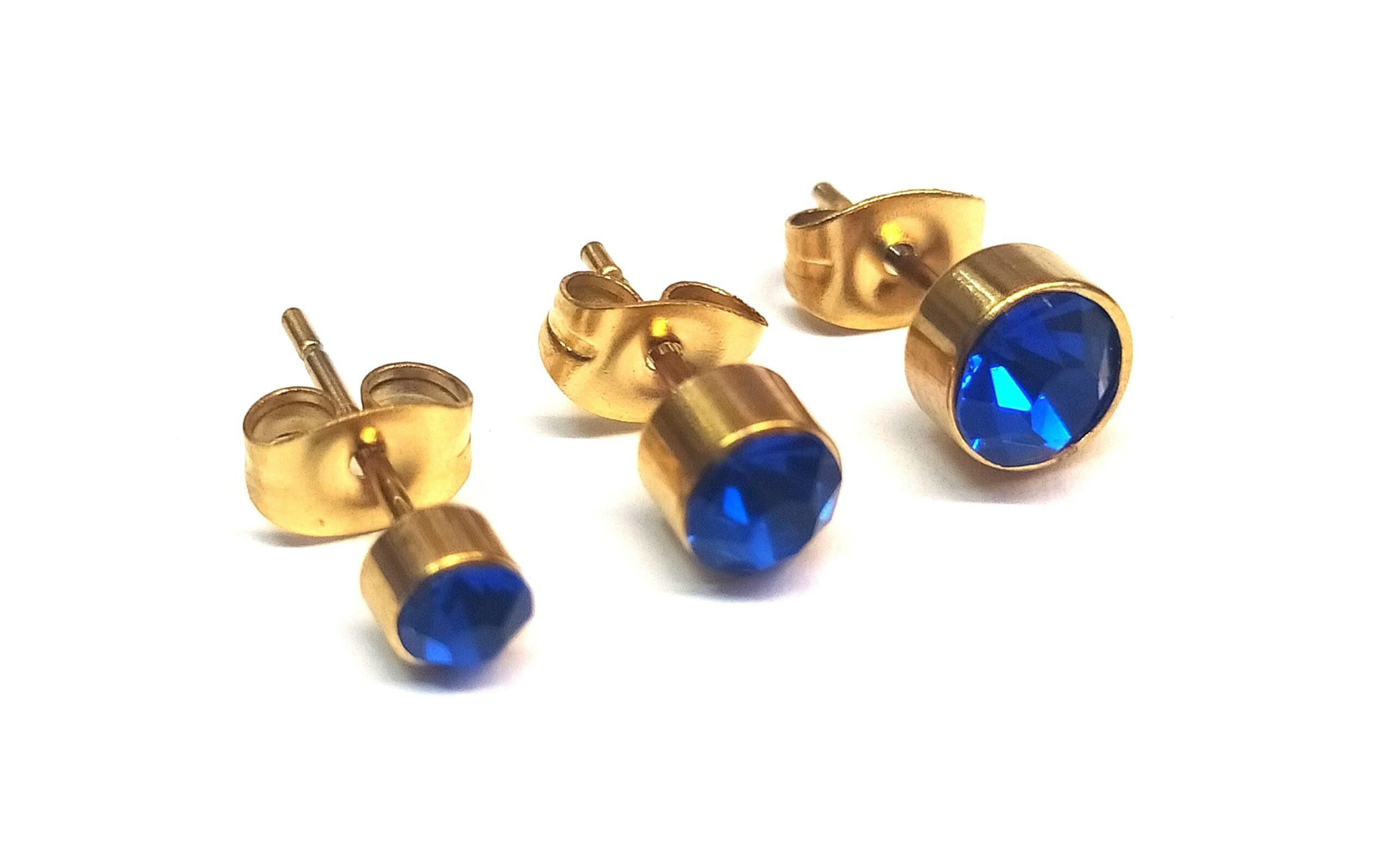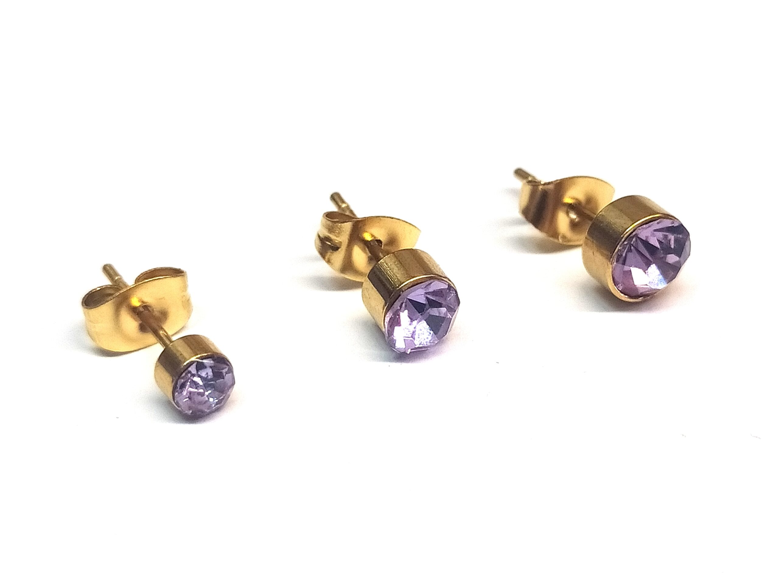 Σετ 3 σκουλαρίκια με στρας από ατσάλι υπό αλλεργικά επιχρυσωμένα 3-4 και 5 χιλιοστά